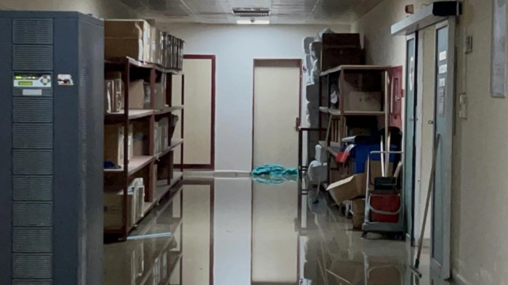 Hastane görevlileri, suyun tahliye edilmesi için çalışma başlattı.