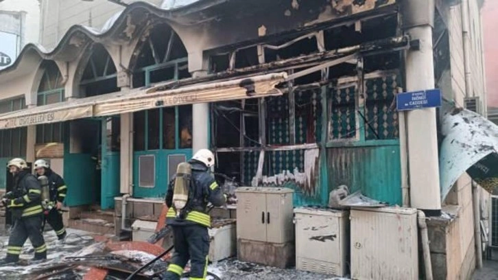 Kısa sürede söndürülen yangın nedeniyle camide hasar oluştu.