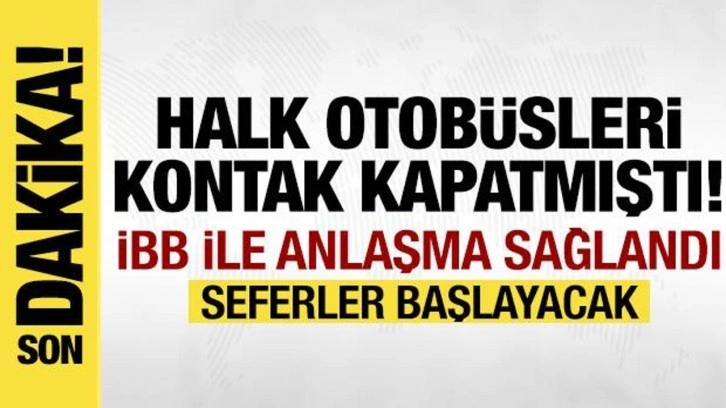SON DAKİKA HABERİ: İstanbul Büyükşehir Belediyesi (İBB) ile özel halk otobüsleri arasında uzlaşma sağlandığı öğrenildi. Bugün kontak kapatma kararı alan megakentteki özel halk otobüslerinin seferlerine yeniden başlayacağı öğrenildi.