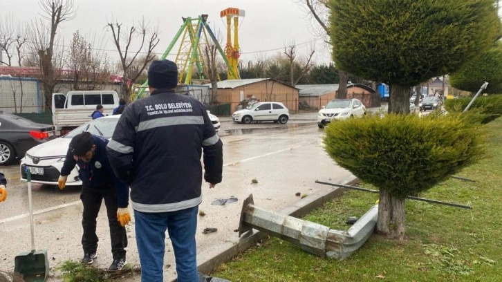 Direksiyon hakimiyeti kaybedilen kamyonet önce orta refüje atladı, ardından kayarak demir elektrik direğe çarptı. Meydana gelen kazada sürücü T.A. yara almazken, yolcu konumunda bulunan H.A.Ö. (16) hafif yaralandı.