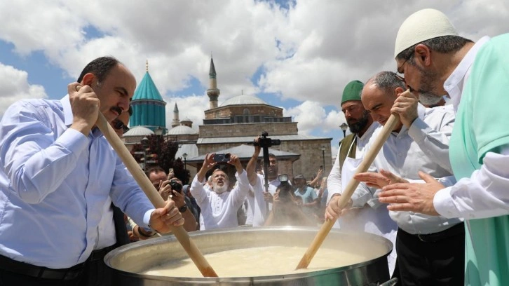 Mevlana Türbesi’nde ocaklardaki aşure, Mevlid-i Şerif ve zikirlerle gün boyu altı harlanmış kazanlarda kaynatıldı. Hazırlanan 4 ton aşure Konyalılara ikram edildi.