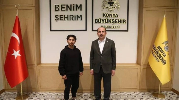 Konya Büyükşehir Belediye Başkanı Uğur İbrahim Altay, Selçuk Mahallesi’nde 4 katlı bina çökmeden önce durumu fark ederek tüm dairelerin kapılarını çalan ve insanların dışarı çıkmasını sağlayan Ali El Hüseyin (20) ile abisi Muhammed El Hüseyin’i ağırladı.