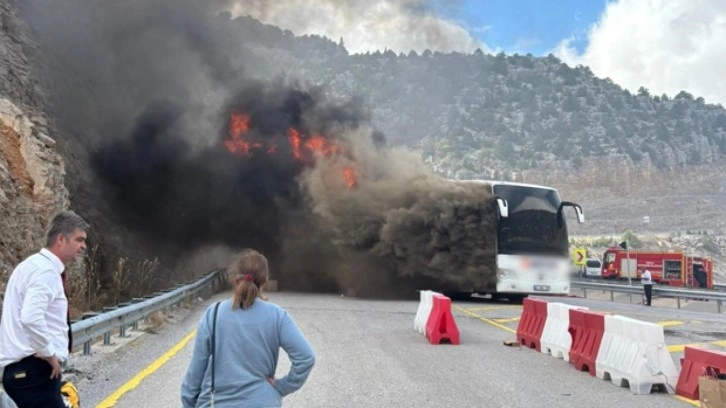 Yangının fark edilmesi üzerine araç kontrollü olarak durdurularak yolcular tahliye edildi. İhbar üzerine olay yerine sevk edilen itfaiye ekiplerince yangın kontrol altına alınarak söndürüldü.
