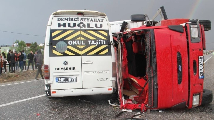 Yan yatan kamyon karşı yönden gelen içerisinde büyük bölümü bir silah fabrikasında çalışan ve mesai sonrasında evlerine dönüş yapan işçilerin bulunduğu Beyşehir ilçe merkezi yönüne giden A.Ö.K. idaresindeki minibüs ile çarpıştı.