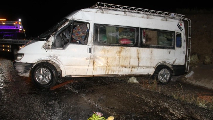 H.T. idaresindeki 63 NN 953 plakalı minibüs, Konya-Hüyük kara yolunun 60. kilometresinde yağış nedeniyle kayganlaşan yolda devrildi.