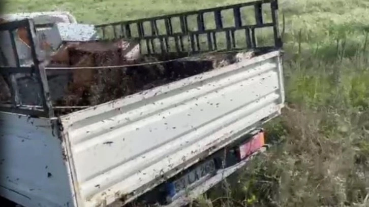 Araçta bulunan kovanlardan çıkan arılar çevreye dağıldı.