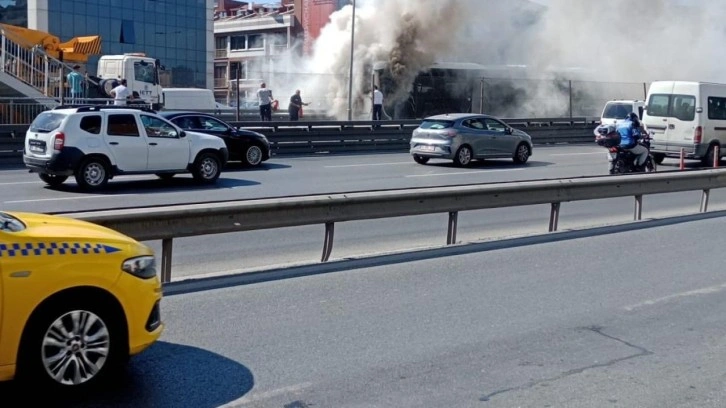 Küçükçekmece Beşyol metrobüs durağında bir metrobüste yangın çıktı.