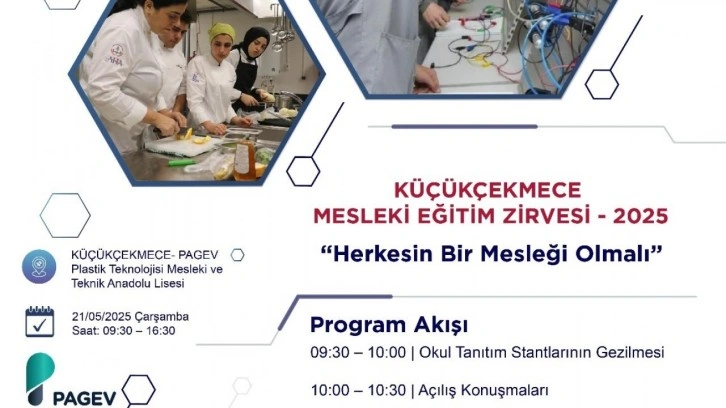 Küçükçekmece İlçe Milli Eğitim Müdürlüğü'nün katkılarıyla, 21 Mayıs Çarşamba günü saat 09.30 ile 16.30 saatleri arasında Küçükçekmece Plastik Teknolojisi Mesleki ve Teknik Anadolu Lisesi'nde "Küçükçekmece Mesleki Eğitim Zirvesi" düzenlenecek.Etkinlik programı şu şekilde:Tarih: 21 Mayıs 2025 - Çarşamba Yer: PAGEV Plastik Teknolojisi MTALSaat: 09.30 – 16:30 09:30 Okul Tanıtım Stantlarının GezilmesiMüzik Dinletisi - Fotoğraf Sergisi 10:00 Açılış KonuşmalarıYarışmalar Ödül Töreni (İş Sağ.Güv. – Ahilik Foto. – Girişimcilik) 10:30 1. OTURUM – MESEM Programı ve EtkileriModeratör: Mustafa BÜYÜKDEDE – İTO Meclis Bşk. Yrd.Sanayici Abdurrahman ACAR – AKÜDER BşkAtilla BAŞLAR – TASEV Vakfı Eğt. Koord.Lütfi DEMİR – İSTESOB Gn. Sek. Eğt. Md Orhan ALBAYRAK- Doç. Dr. İTO Mec.Üye.-İTÜ Teknopark Yk.Üyesi 12:00 Yemek molası 13:00-14:30 2. OTURUM – Mezun ve İstihdam İlişkisi Moderatör: M. Vural KOÇ – İkitelli OSB YK Üyesi Begüm ÖZDOĞULARLI – Doğru Odak Okulları Kurucusu Dilek ATAKUL – İBB Bölgesel İstihdam Ofisi Birim Sorumlusuİlker KARATAŞ - İHKİB Yönetim Kurulu üyesiMehmet Kemal AKSEL – MSA Kurucusu 14:30-14:45 Mola 14:45-16:15 3. OTURUM – Doğru İnsan ve Doğru MeslekModeratör: Hami KOÇ – Eğitim Yöneticisi, SosyologBeyza Kırca- Dr. Öğr. Üyesi- İst. Sabahattin Zaim ÜniversitesiEmine TURGUT – İst. Aydın Üni. Tanıt. Reh. Koord.Murat DEMİR – BASEV Vakfı Bşk 16:15-16:30 Kapanış Konuşması Kaynak: HABER7.COM#ESHAHABER.COM.TR #haber #gündem #sondakika #news #press #worldnews