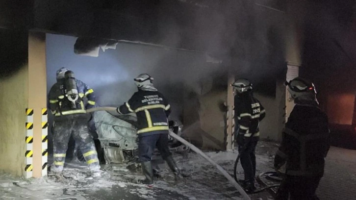 Tamamen yanarak hurdaya dönen otomobilin çevresindeki 2 araçta da hasar meydana gelirken, apartmanın dış cephesi ve garaj kısmında da alevlerden dolayı yanmalar oluştu.