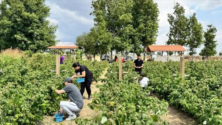 Ailesiyle meyve toplayan Mücahit Coşkun, kızının ahududunu çok sevdiğini için sürekli bahçeye geldiklerini belirterek, meyveleri dalından toplayarak yemenin tadına vardıklarını kaydetti.