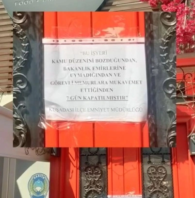 Aydın’ın Kuşadası ilçesinde müzik yayınının sonlandırılması için giden 2 polis memuruna mukavemet gösterilen iş yeri 7 gün süreyle mühürlendi.