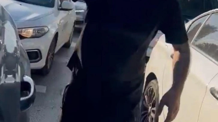 Tartışmanın büyümesiyle aracından inen otomobil sürücüsü, bağırarak kadın sürücünün aracına doğru yürüdü. 2 çocuğuyla panik yaşayan kadın, olayı cep telefonu kamerasıyla kaydetti.