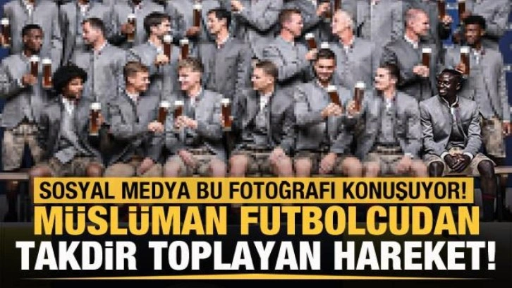 Almanya’nın Münih kentinde düzenlenen ünlü bira festivali 'Oktoberfest'in başlamasına kısa bir süre kala takımının geleneksel aile fotoğrafına katılan ünlü futbolcu Sadio Mane, eline bira bardağı almadı.