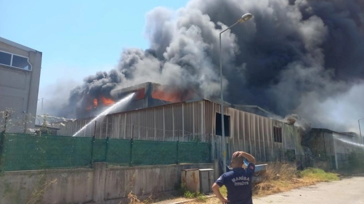 Manisa'nın Yunusemre ilçesinde Muradiye Organize Sanayi Bölgesi'ndeki fabrikada henüz belirlenemeyen nedenle yangın çıktı.