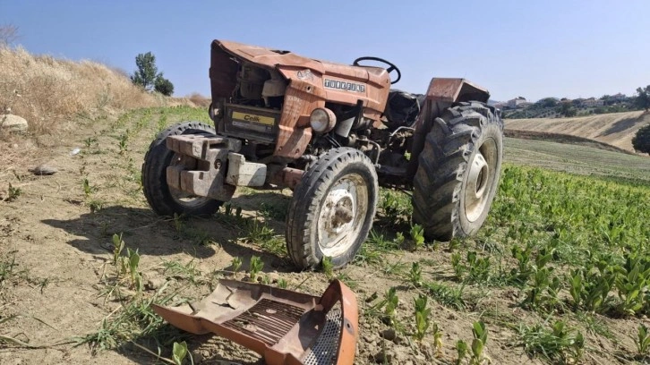 Traktör, yaklaşık 2 metre yükseklikten yol kenarındaki tütün tarlasına uçtu. Akdeniz, traktörün altında kalıp, ağır yaralandı.