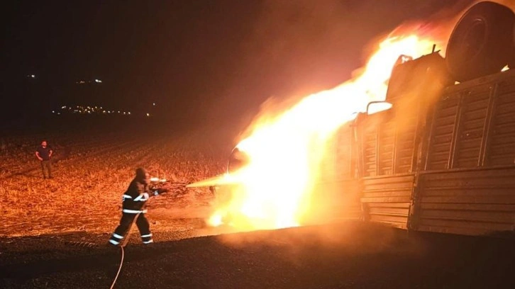 Tırın alev alması sonucu sürücü hayatını kaybetti. İhbar üzerine olay yerine itfaiye, polis ve 112 Acil Sağlık ekipleri sevk edildi.