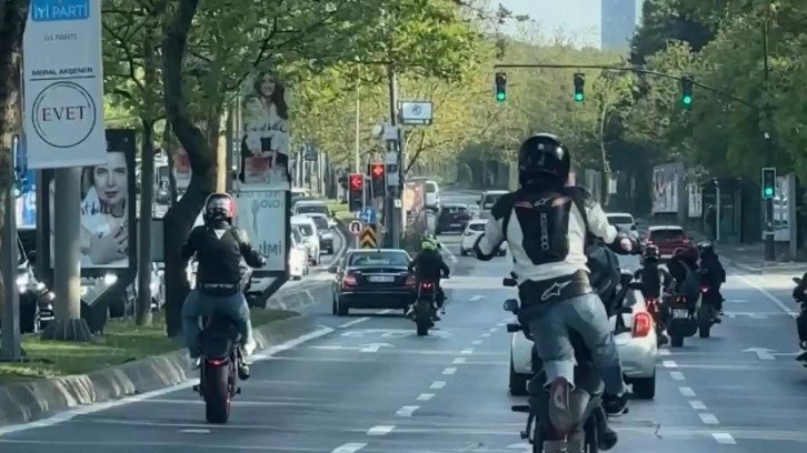 Sarıyer Maslak Büyükdere Caddesi üzerinde seyreden motosikletli bir grup, trafikte giden araçların arasında tek tekerlek üstünde gitti.