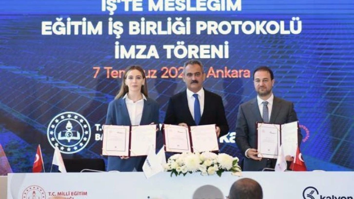 Milli Eğitim Bakanlığı ile Kalyon Güneş Teknolojileri Üretim AŞ ve Kalyon Güneş Enerjisi Üretim AŞ arasında düzenlenen İş’te Mesleğim Eğitim İş Birliği Protokolü imza töreni, Başkent Organize Sanayii Bölgesi’nde yer alan Kalyon PV’de gerçekleşti. İmzalanan protokol çerçevesinde, yenilenebilir enerji teknolojileri ve güneş enerjisi sistemleri alanında istihdam edilmiş çalışanların mesleki eğitim süreçlerini hayata geçirme noktasında işbirliği oluşturulması planlanıyor. Protokol çerçevesinde, ihtiyaç duyulan eğitim programlarının taraflarca belirlenmesi ve gerekli planlamaların yapılması hedefleniyor. Ayrıca, oluşturulan programlar doğrultusunda öğrencilerin MEM Programına kaydının yapılması ile öğrencilerin atölye uygulama derslerinin ve işletmelerde mesleki eğitimlerinin Şirket bünyesinde ve Solar Akademi’de gerçekleştirilmesi amaçlanıyor. Bununla birlikte, belirlenecek okulların atölye ve laboratuvarlarına donatım desteği verilmesi, eğitim alacak öğrencilere eğitimlerine ilişkin temrinlik malzeme desteği sağlanması ve protokol kapsamında belirlenen okullarda öğrenim gören öğrencilerin Şirket bünyesinde mesleki eğitimlerinin gerçekleştirilmesi de belirlenen hedefler arasında yer alıyor.