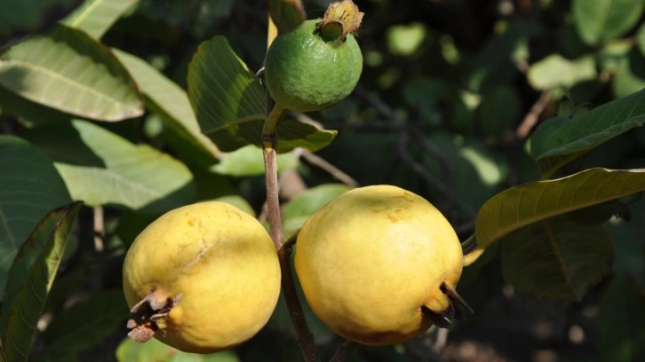 7 ton civarında ürün elde ettiğini dile getiren Levent, guavanın dalından koparılıp yenebilen bir meyve olduğunu belirterek, şunları söyledi: