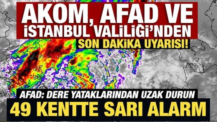SON DAKİKA HABERİ: Meteoroloji Genel Müdürlüğü, 49 il için sarı kodlu uyarıda bulundu. AKOM, AFAD ve İstanbul Valiliği de megakent için peş peşe açıklamalarda bulundu. Yaşanabilecek felaketlere karşı saat veren yetkililer yaşanabilecek olumsuzlara karşı da vatandaşları uyardı.