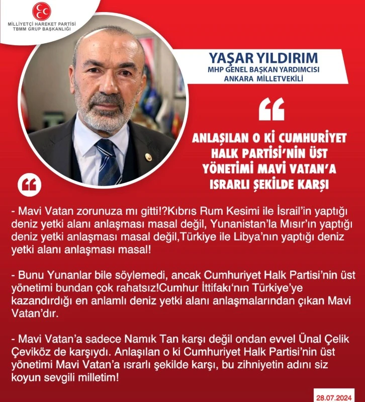 ANLAŞILAN O Kİ CUMHURİYET HALK PARTİSİ'NİN ÜST YÖNETİMİ MAVİ VATAN'A ISRARLI ŞEKİLDE KARŞI