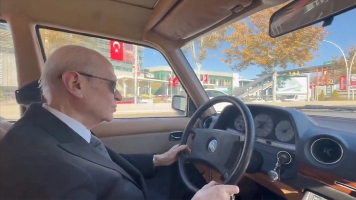 MHP'nin sosyal medya hesaplarından, Bahçeli'nin Mercedes marka klasik otomobiliyle Ankara caddelerinde gezdiği anlara ait video paylaşıldı.