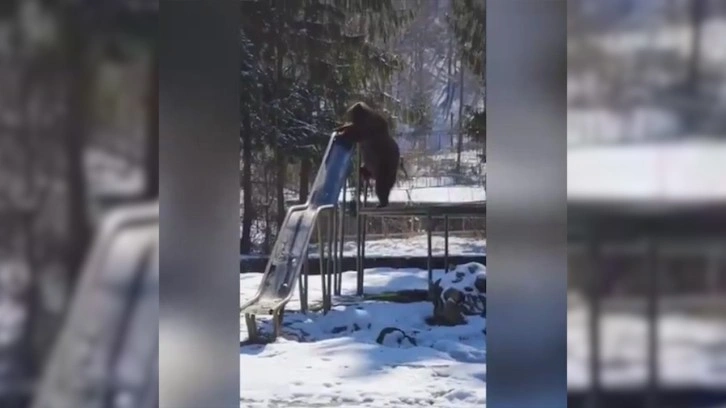 Görüntüler Rusya’dan: Soğuk havaların etkisiyle parkların boş olduğu ülkede bir ayı kaydırağa çıkarak kaymayı denedi. O anları çevrede bulunan insanlardan birisi kayda aldı.