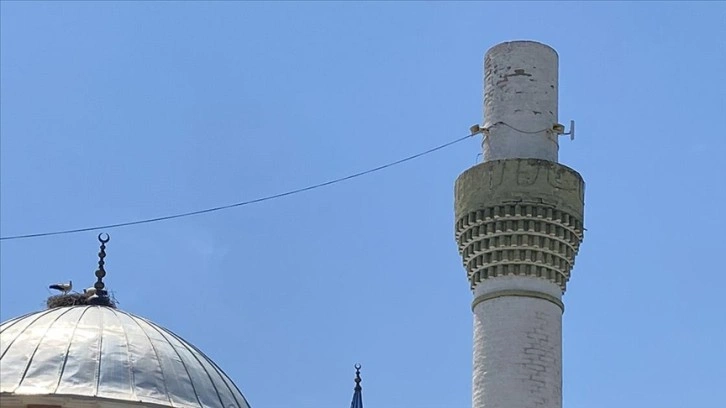 Mahalle sakinleri, minarenin külahını uçuran rüzgarın, içinde yavruların da bulunduğu leylek yuvasına zarar vermemesinin şaşkınlığını ve sevincini yaşıyor.