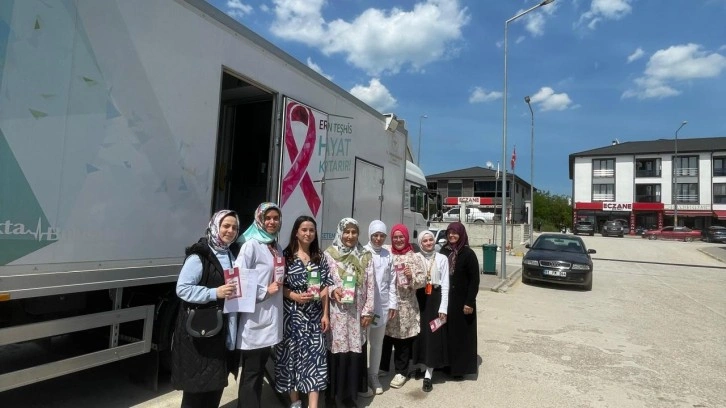Düzce'nin Çilimli ilçesinde mobil kanser taraması yapan ekipler yaş gruplarına göre ayrı tarama türleri yapıyor. 40-69 yaş arası kadınlara meme kanseri, 30-65 yaş arası kadınlara rahim ağzı kanseri, 50-70 yaş arası kadınlara da bağırsak kanseri taramalarını ücretsiz olarak gerçekleştiriliyor. Kanser taramalarının yanı sıra kadınlara kanserin, erken teşhis edildiğinde önlenebilir bir hastalık olduğu konusunda eğitimler veriliyor.