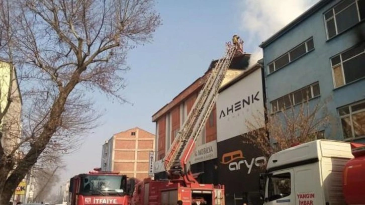 Mahmudiye Mahallesi Osmanbey Caddesi'nde faaliyet gösteren 3 katlı mobilya imalathanesinin çatısında, saat 12.30 sıralarında yangın çıktı.