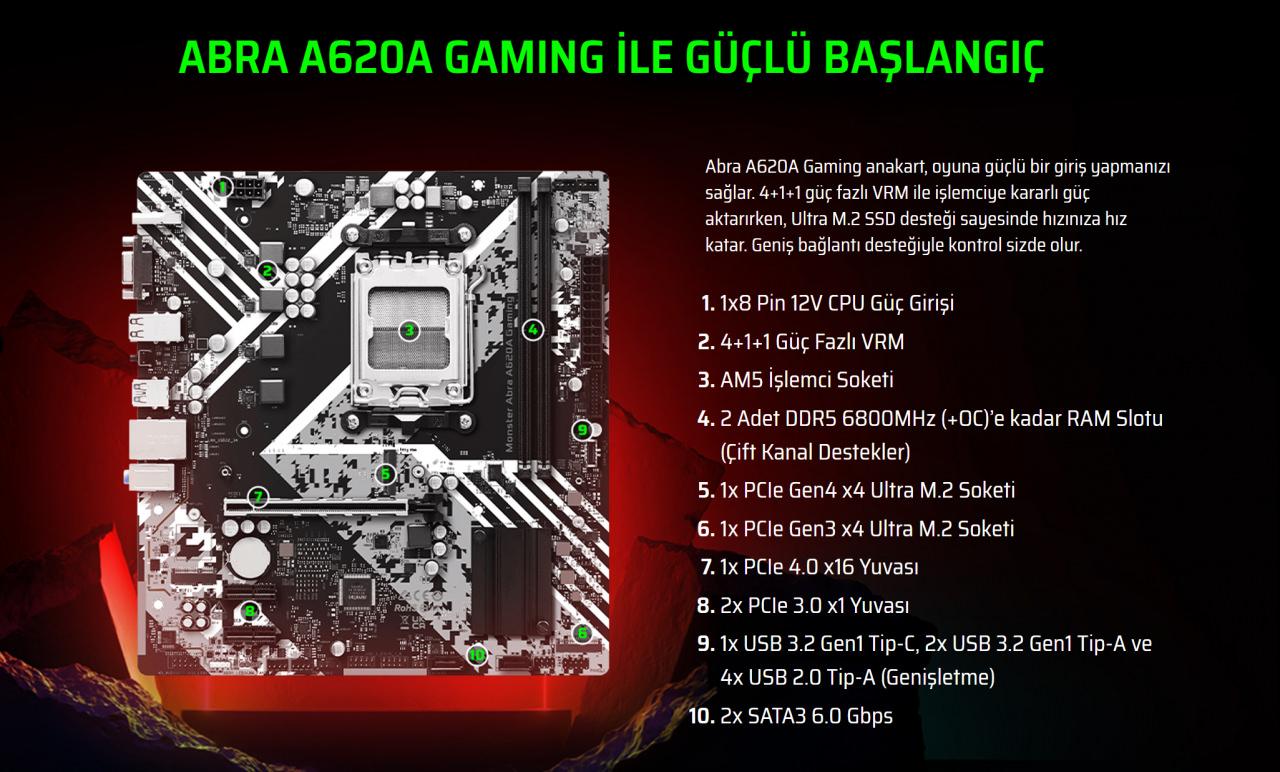 Sistemin kalbinde Monster’ın A620A Gaming anakartı yer alıyor.