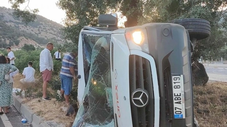 Çarpmanın etkisiyle kontrolden çıkan minibüs, refüje devrildi. Minibüsteki 6 turist yaralandı. Çevredekilerin ihbarıyla bölgeye çok sayıda sağlık ve jandarma ekibi sevk edildi. Sağlık ekiplerinin olay yerindeki ilk müdahalesinin ardından yaralılar, çevre hastanelere kaldırıldı.