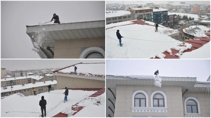Kar kalınlığının bazı bölgelerde yarım metreye ulaştığı kente vatandaşlar, çökme riskine karşı, ev ve iş yerlerinin çatılarında biriken karı temizletiyor.