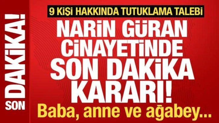 NARİN'İN ANNESİ VE AĞABEYİ DAHİL 9 KİŞİ HAKKINDA TUTUKLAMA İSTEMİ