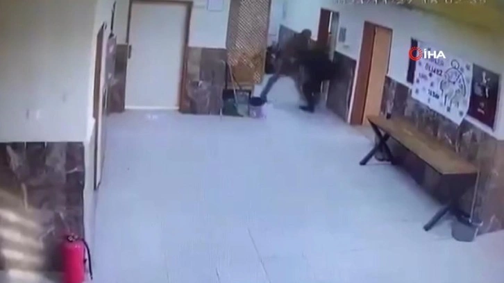 Sabah saatlerinde okula gelen ağabey, kız kardeşinin tartıştığı öğretmeni ve kavgayı ayırmak için araya giren başka bir öğretmeni tekme tokat dövdü. O anlar güvenlik kameralarını saniye saniye yansıdı.