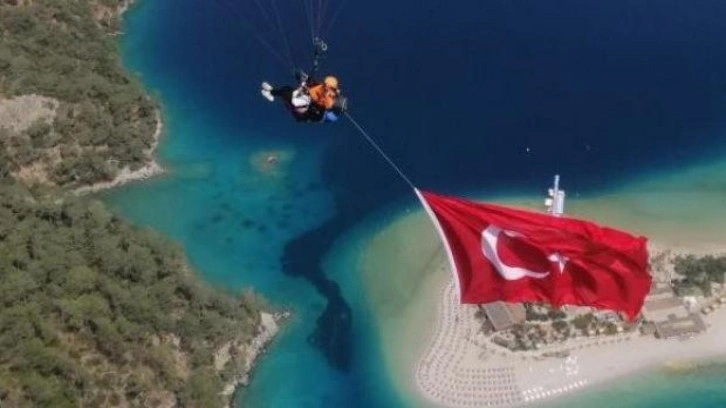 Yamaç paraşütü pilotları Babadağ'ın "1200" pistinden uçuş yaparak Türk bayrağı açtı. Ölüdeniz semalarında dalgalandırılan Türk bayrağı, pilotlar tarafından aksiyon kamerası ile görüntülendi.