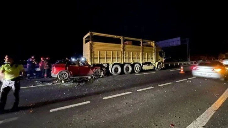 Sakarya’dan Bilecik yönüne giden Bahadır Yavuz'un kullandığı plakalı otomobil, kamyona arkadan çarptı.