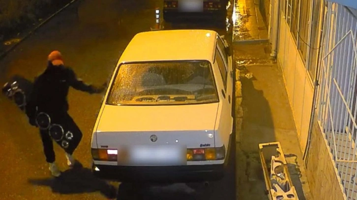 Görüntülerde; A.Y.'nin otomobilin etrafında bir süre dolaşıp, etrafı kontrol ettiği ardından kapısını açarak içine girip ses sistemlerini sökerek çaldığı görüldü.