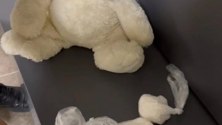Operasyonda ele geçirilen oyuncak ayının içinden içinden 5 parça halinde 613,35 gram metamfetamin maddesi çıktı.
