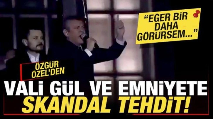 Parmak sallayarak İstanbul Valisi Davut Gül'ü tehdit eden Özel, "Emniyet güçleri, bu meydanı provoke etmeyin. İstanbul Valisi Davut Gül, buradan sana sesleniyorum. Bu meydanı provoke etme.