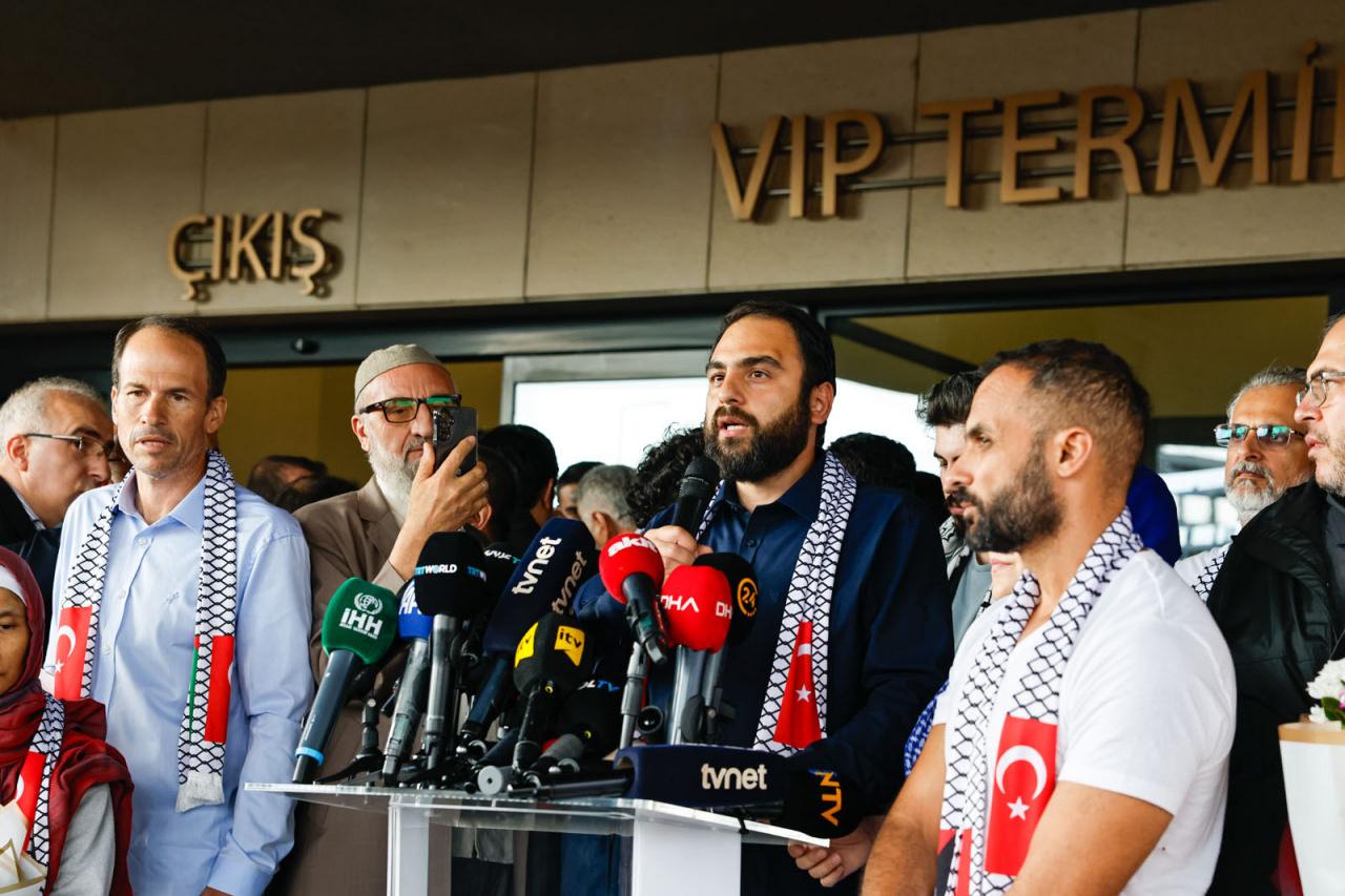 Burada yapılan basın açıklamasında konuşan Mavi Marmara Derneği Başkanı Beheşti İsmail Songür, aktivistlere teşekkür etti. Songür, “Arkadaşlarımız destansı bir mücadele verdiler. Fakat şunun bilinmesi gerekiyor, burada bulunan aktivistler dediler ki ‘Bizler kahraman değiliz, kahraman olan Gazze halkıdır. İnşallah ablukayı kıracak yeni dalgalar da yoldadır. Umuyoruz ki dünya vicdanı o sınırlara tekrardan dayanacak ve insani yardımlar Filistin’e ulaşacaktır. Bundan sonra bizim için bu filoların devamlılığı çok önemlidir” dedi.