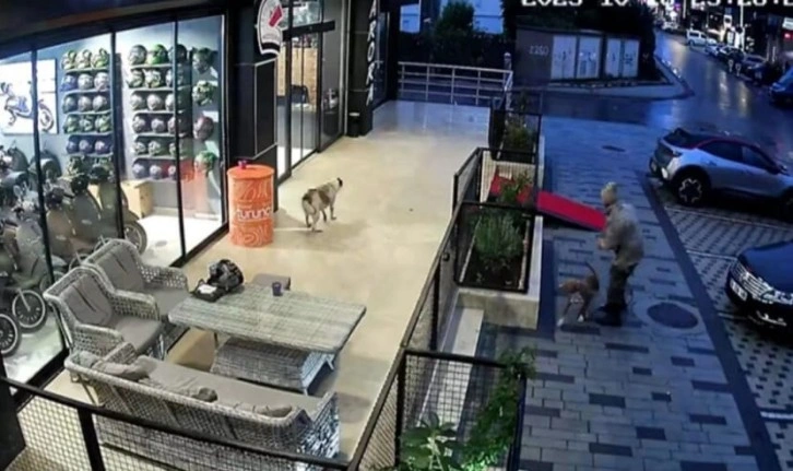 Olay önceki gün akşam saatlerinde Tahtakale Mahallesi'ndeki Firuze Çiçeği Sokak'ta meydana geldi. Alaattin Y. (42) elindeki ipe bağlı Pitbull cinsi köpeği ile dolaşmaya başladı. Alaattin Y., köpeği sokakta gördüğü sahipsiz köpeklere saldırttı. Köpekler kaçışırken, yakındaki bir motosiklet yetkili servisinin bahçesine kaçtı. İşyeri sahibi Kenan A., dışarı çıkarak duruma müdahale etmek istedi. Alaattin Y., Kenan A.'ya yanında taşıdığı bıçağı göstererek tehdit ettikten sonra uzaklaştı. Kenan Akdağ, güvenlik kamerası kayıtlarını alarak mahallede bulunan polis merkezine giderek şikayetçi oldu. İfadelerin alınmasından sonra polis kısa sürede şüphelinin 'Tehdit' ve 'Kasten yaralama' suçlarından kayıtlı Alaattin Y. olduğunu belirledi. Şüpheli gözaltına alındı, üzerinde taşıdığı bıçağa da el konuldu. Nöbetçi Cumhuriyet Savcısının talimatı ile şüpheli hakkında 'Tehdit' ve 6 bir 136 Sayılı Yasa'ya muhalefet suçlarından adli işlem başlatılırken ayrıca Kabahatler Kanunu'ndaki ilgili maddeye göre idari para cezası uygulandı. Pitbull köpeği ise, Avcılar Belediyesi Veteriner Müdürlüğü görevlilerine teslim edildi.