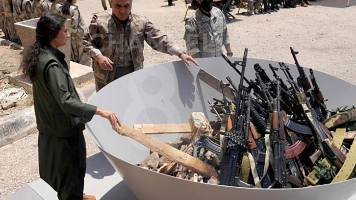 Bese Hozat, “Barış ve demokratik toplum sürecinin pratik başarısı için bir iyi niyet ve kararlılık adımı olarak ve bundan sonra özgürlük, demokrasi ve sosyalizm mücadelesini demokratik siyaset ve hukuk yöntemiyle yürütmek amacıyla ve demokratik entegrasyon yasalarının çıkarılması temelinde silahlarımızı özgür irademizle imha ediyoruz. Attığımız bu adımın tüm halkımıza, Türkiye ve Ortadoğu halklarına ve tüm insanlığa barış ve özgürlük getirmesini diliyoruz” dedi.