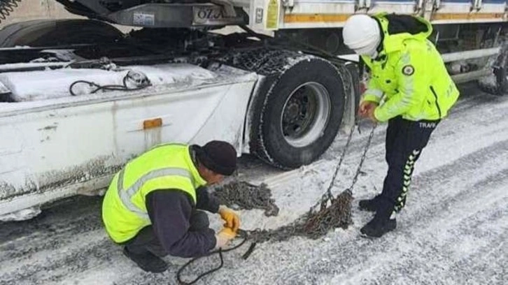 Merkez Bölge Trafik Denetleme Şube Müdürlüğü, Refahiye ve Tercan Bölge Trafik Denetleme İstasyon Amirliğine bağlı 9 ekip yolda kalan araçlara zincir taktı.
