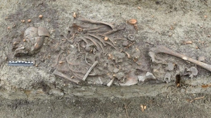 Toprak katmanlarını ve çevredeki çanak çömlek gibi bulguları inceleyen arkeologlar, gömü alanının 13. yüzyıla ait olduğunu tahmin ediyor.