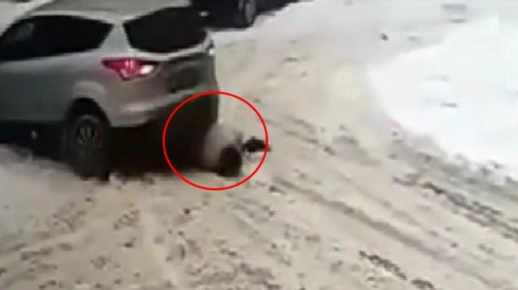 Dikkatsiz sürücü, aracının kar birikintilerine saplandığını düşünerek, çarparak yere düşürdüğü kadının üzerinden defalarca geçti. Güvenlik kamerasına yansıyan görüntüde, yaşlı kadının ayağa kalkmaya çalıştığı görüldü. Dikkatsiz sürücü, en sonunda aracından inmesinin ardından yerde yatan kadını fark etti.