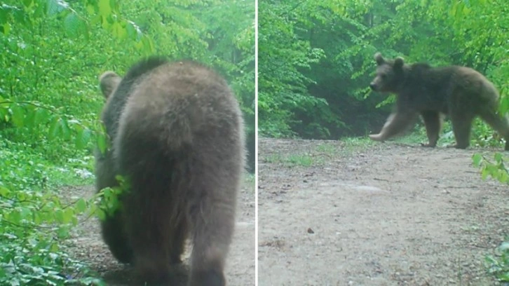 Sakarya’da yaban hayatı izlemek için ormana fotokapan yerleştiren Serdar Özergene, görüntüleri incelediği sırada ormanda dolaşan boz ayının görüntüsünü gördü.