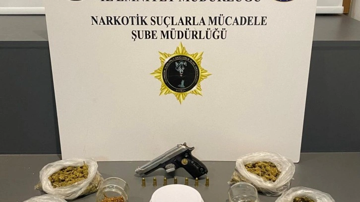 Ekipler, Güzelyalı ve Esenevler mahallelerinde İ.İ. (53), A.K. (41), F.S.G. (41) ve S.E'nin (42) iş yeri ve ikametlerinde yaptıkları aramada, 12,40 gram esrar, 419,82 gram sentetik uyuşturucu, 143 sentetik ecza hapı, 2 hassas terazi, esrar öğütücü ile uyuşturucu kullanım aparatı, ruhsatsız tabanca ve 43 tabanca fişeği ele geçirdi.