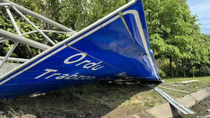 Hasar oluşan kazada, devrilen yön tabelası kara yolunu araç trafiğine kapattı.