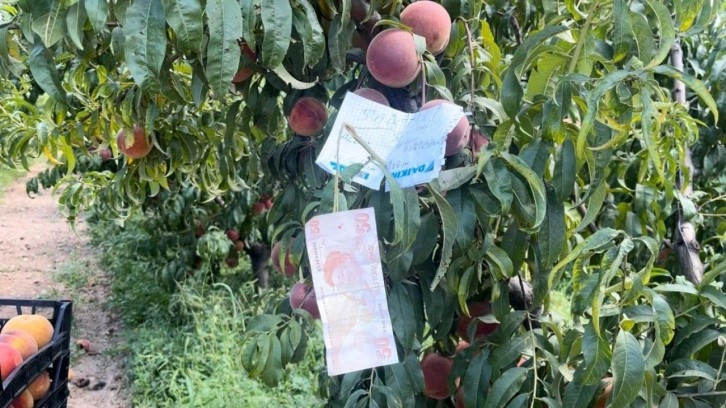 Genç çiftçi, şeftali ağacında bir not ve yanında bir miktar para buldu.